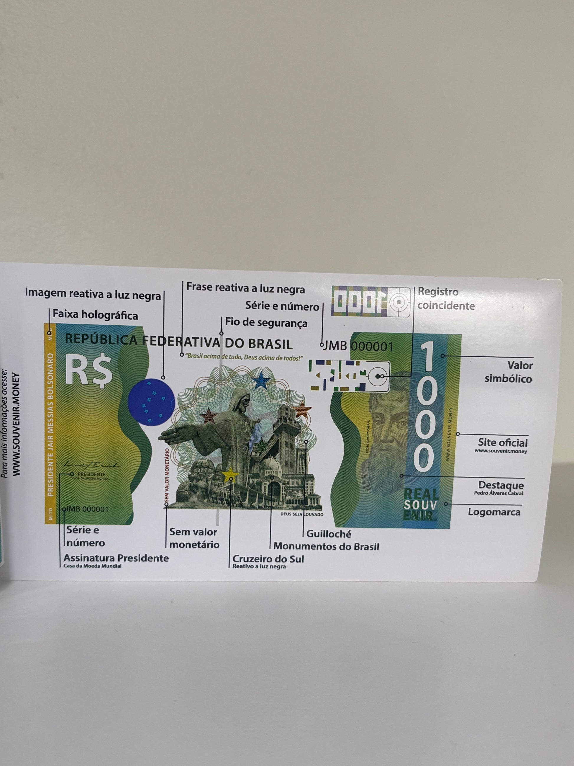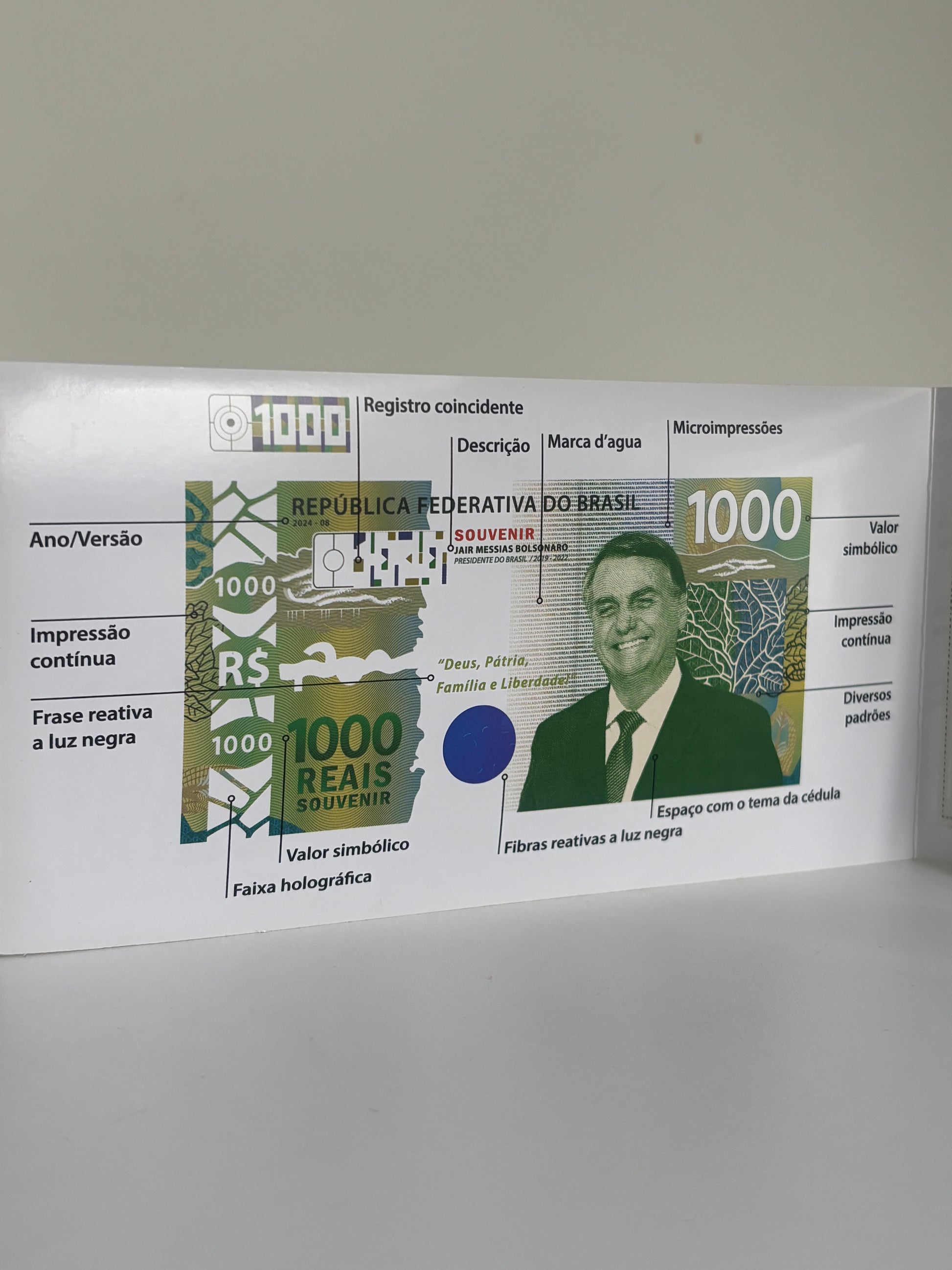Cédulas de Souvenir Money do Presidente Jair Bolsonaro